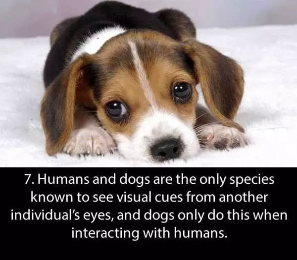 4.人类和狗狗是能透过其他人的眼睛来发现"视觉线索",而狗狗也只有和人类交流时才做得到。