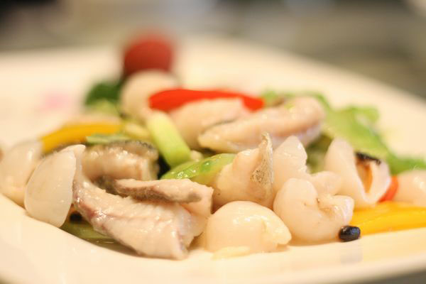 鱼肉是非常软嫩的食材,尤其是东星斑这样的鱼肉,更加细嫩。如果按照大家的理解,先上浆后滑油再翻炒,一来菜肴锅气不足,二来鱼肉非常容易被炒散。正确的处理方法:鱼片加入少许蛋清和生粉上浆;不粘锅内放入少许色拉油,待油温升至四五成热时,放入鱼片,利用中火加热至八成熟,然后搭配辅料炒制。