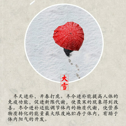 昨日本是大雪节气,但是今日这场大雪才如约而至,你有没有和雪来一场互动呢?堆个雪人,打个雪仗,在绵绵的雪地上留下自己的脚印,但是玩耍的同时大家不要忘记注意保暖哦! 大雪时节是身体进补的大好时节,大雪补养得当,来年就有很坚实的身体底子,抵抗疾病的侵扰。