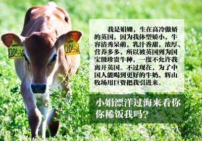 辉山乳业牧场已经拥有超过18万头进口奶牛,其中有只特别的娟姗小牛要降生了,但牛宝宝还没!有!名!字!谁愿意帮它?辉山乳业在最霸气、最创意的名字中进行海选投票,如被选中就有机会参观辉山牧场并与萌牛宝宝见面哦!