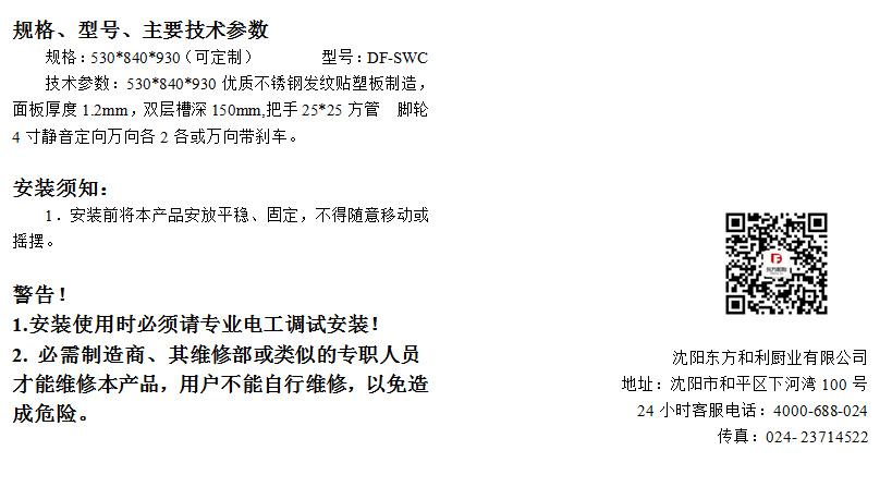 沈阳东方和利厨业有限公司 销售服务电话15309880999